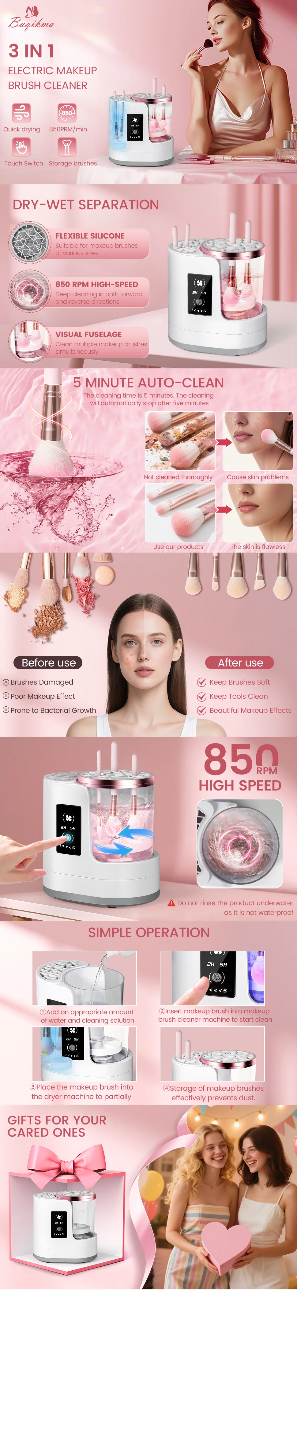 3 IN 1 Electric Makeup Brush Cleaner Machine With Makeup Brush Dryer-Holder-Portable Automatic USB Cosmetic Brushes Cleaner Tool