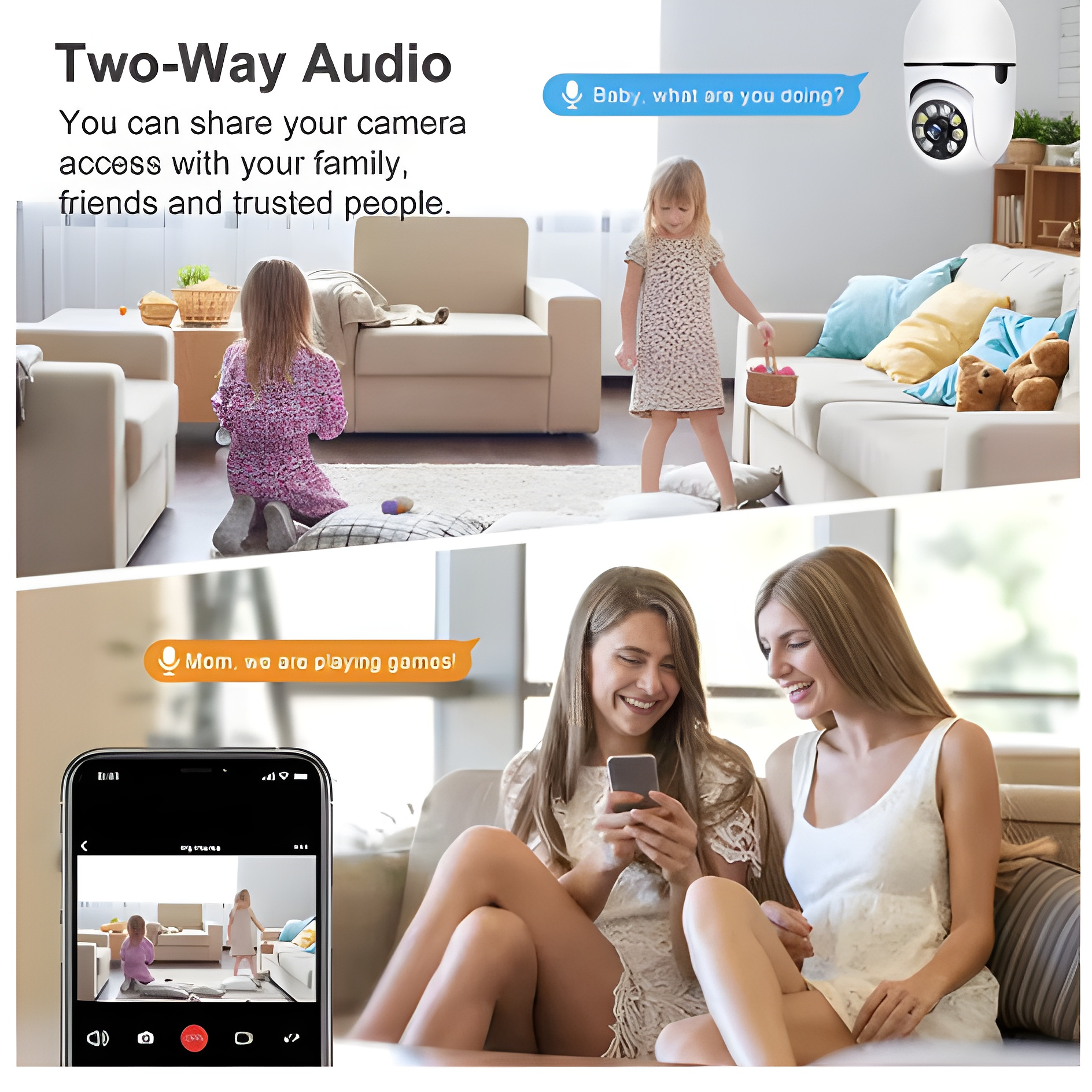 Transform any standard light fixture into a sophisticated surveillance system with this innovative E27 bulb camera. Featuring advanced night vision technology with color capture capabilities, it delivers clear footage in any lighting condition, day or night. The integrated motion detection system triggers alerts when activity is detected, while WiFi connectivity enables remote monitoring from your smartphone or computer. Equipped with adjustable focus and zoom functions, you gain precise control over your viewing area for comprehensive coverage. Ideal for both indoor and outdoor applications, this discreet security solution provides professional-grade monitoring without requiring complex installation or dedicated wiring.