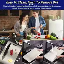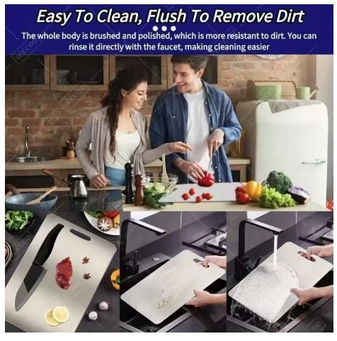 The WXCOO Stainless Steel Chopping Board combines durability with versatility for the modern kitchen. Crafted from premium stainless steel, this thickened cutting surface resists warping, staining, and odor absorption—essential qualities for serious home cooks and meal preppers. The double-sided design maximizes functionality, offering separate surfaces for different food categories to prevent cross-contamination. Whether you're slicing fresh produce, portioning proteins, or kneading dough, the robust construction provides a stable, non-slip work surface that withstands daily use. The stainless steel material ensures easy cleaning and long-term hygiene, while the substantial thickness prevents flexing during intensive cutting tasks. This professional-grade board elevates your food preparation experience, delivering reliability and performance that standard plastic alternatives cannot match.